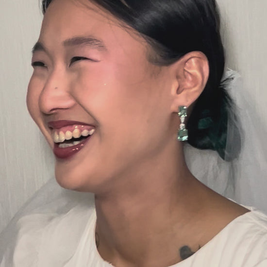 Available in soft blue and clear crystal, this style offers a modern interpretation of timeless bridal jewelry. Whether worn as a subtle something blue or as a classic clear statement, The Covenant Earrings are designed to complement both ceremonial and everyday elegance.